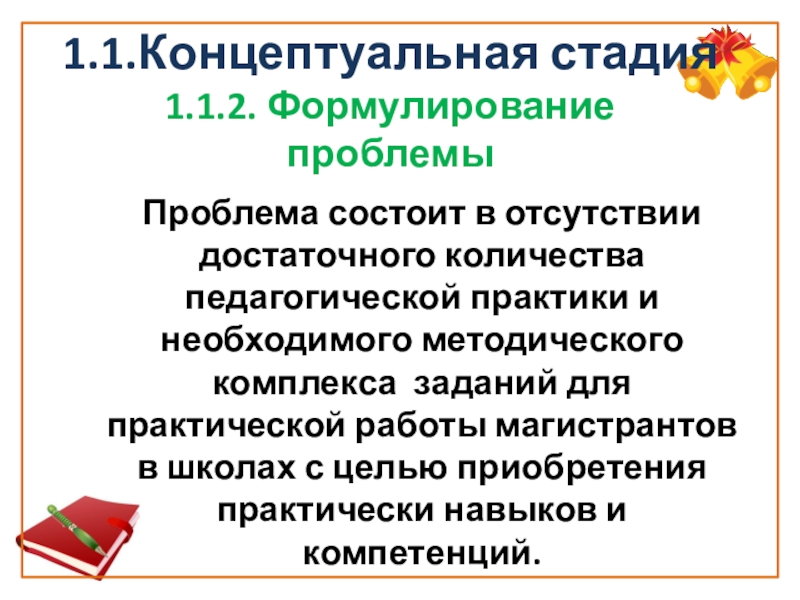1.1.Концептуальная стадия 1.1.2. Формулирование проблемыПроблема состоит в отсутствии достаточного количества педагогической практики и необходимого методического комплекса заданий