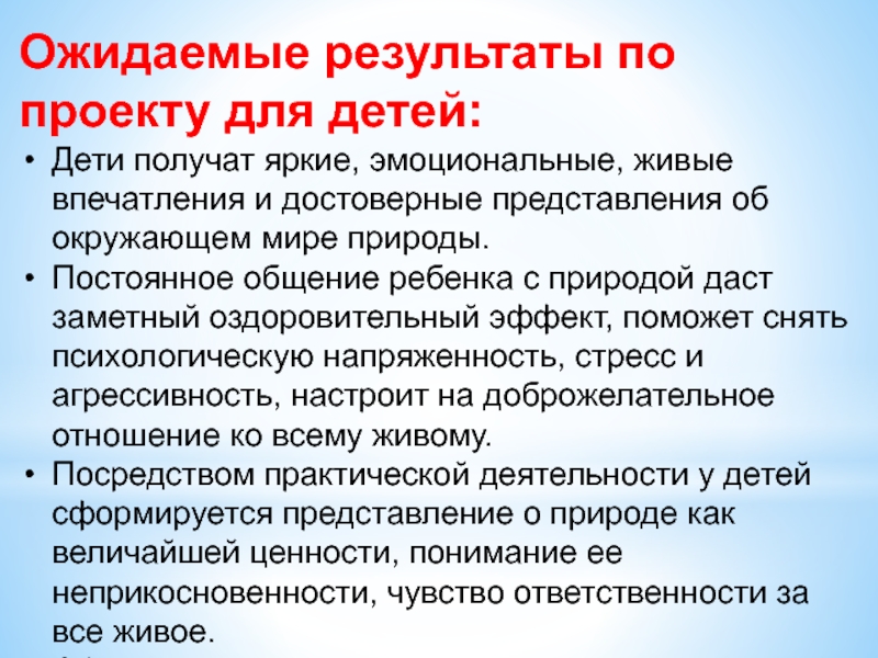 Слайд 9Ожидаемые результаты по проекту для детей: