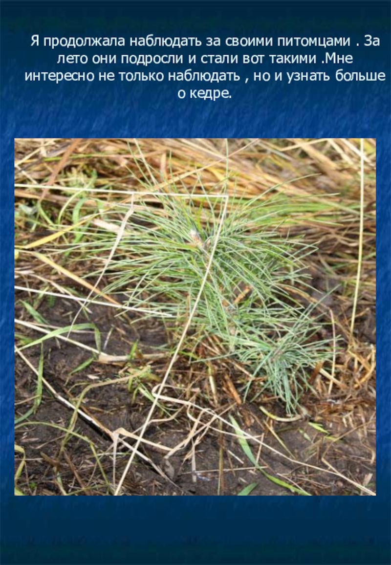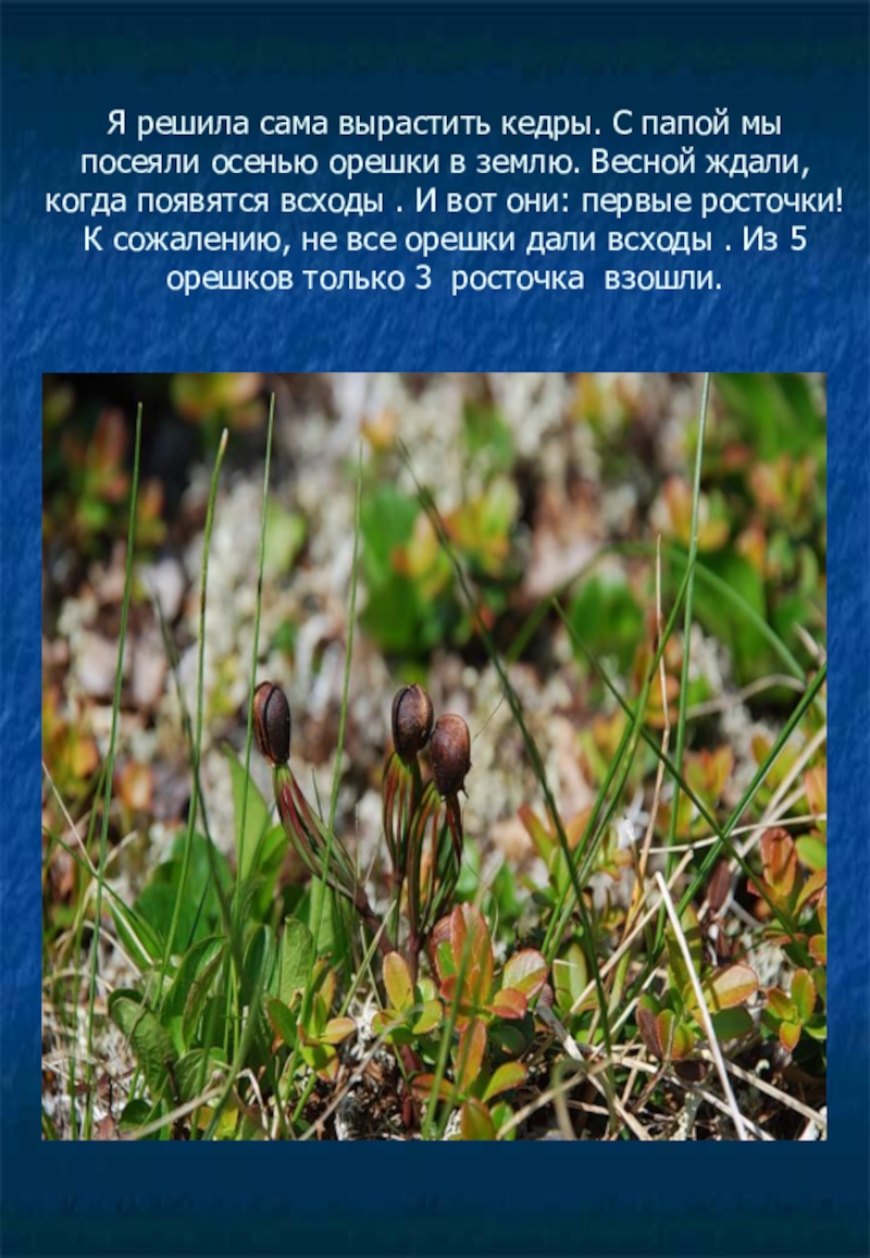 Слайд 4Я решила сама вырастить кедры. С папой мы посеяли осенью орешки
