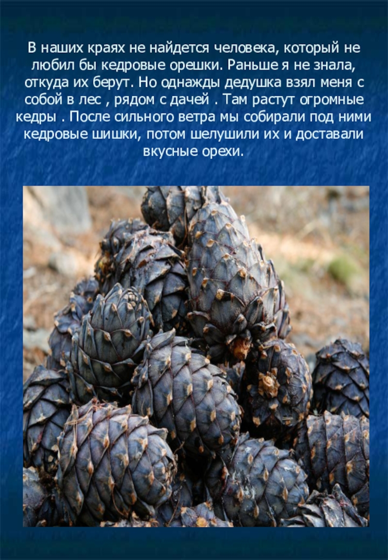 Слайд 3В наших краях не найдется человека, который не любил бы кедровые