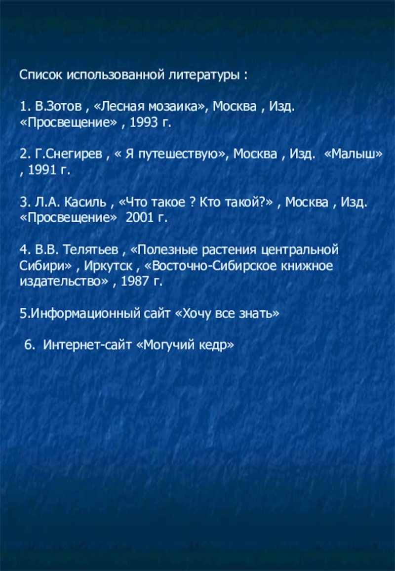 1. В.Зотов , «Лесная мозаика», Москва , Изд.