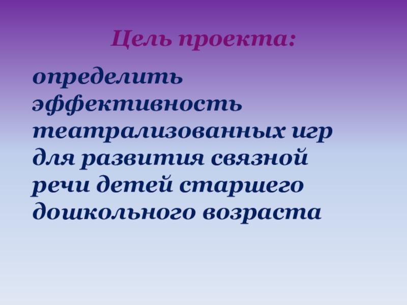 Слайд 1Педагогический проект : «Театрализованные игры как средство развития связной речи у