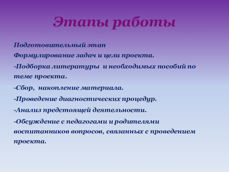 -Обсуждение с педагогами и родителями воспитанников вопросов, связанных с проведением проекта.
