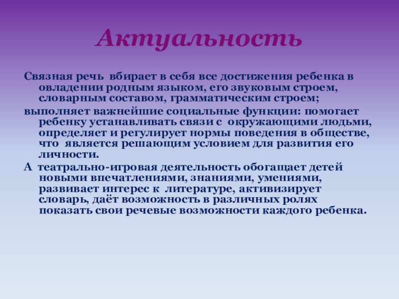 Связная речь вбирает в себя все достижения ребенка в овладении родным