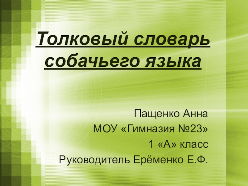 Толковый словарь собачьего языкаПащенко АннаМОУ «Гимназия №23»1 «А» классРуководитель Ерёменко Е.Ф.