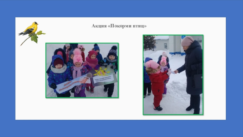 И мы, педагоги, совместно с родителями должны пробудить в детях интерес к друзьям нашим меньшим – птицам, научить заботиться о них, радоваться от сознания того, что подкармливая птиц, можно спасти их зимой от гибели.