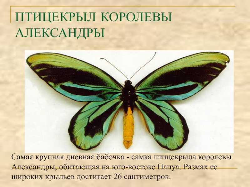 Слайд 13ПТИЦЕКРЫЛ КОРОЛЕВЫ АЛЕКСАНДРЫ