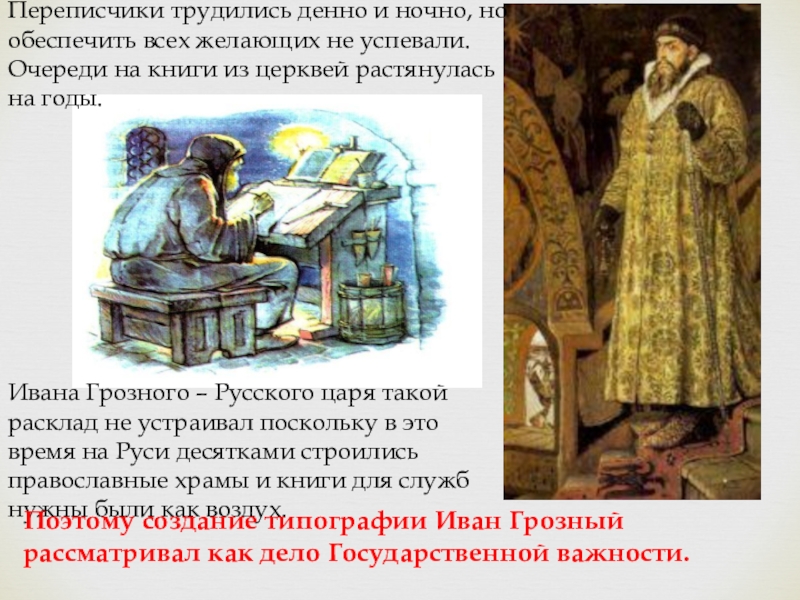 Поэтому создание типографии Иван Грозный рассматривал как дело Государственной важности.