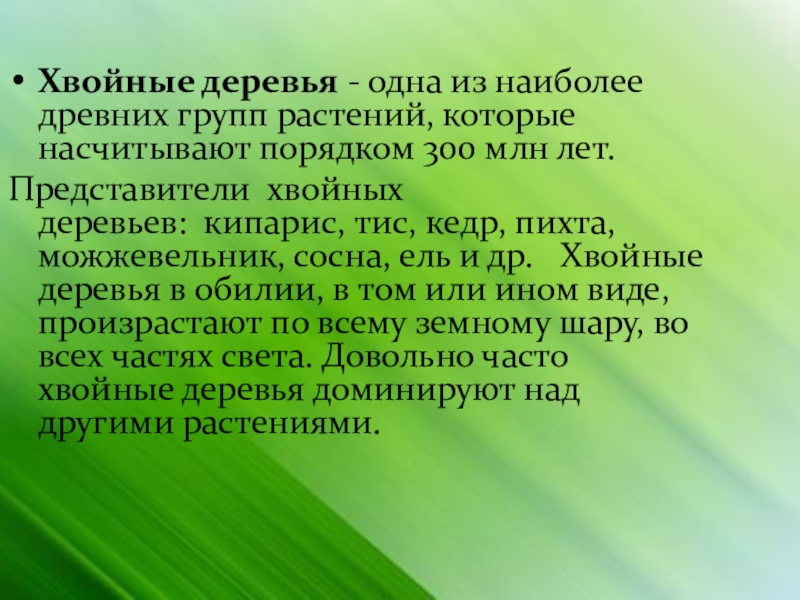 Слайд 6Хвойные деревья - одна из наиболее древних групп растений, которые насчитывают порядком