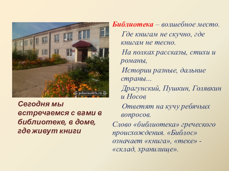 Сегодня мы встречаемся с вами в библиотеке, в доме, где живут книги
