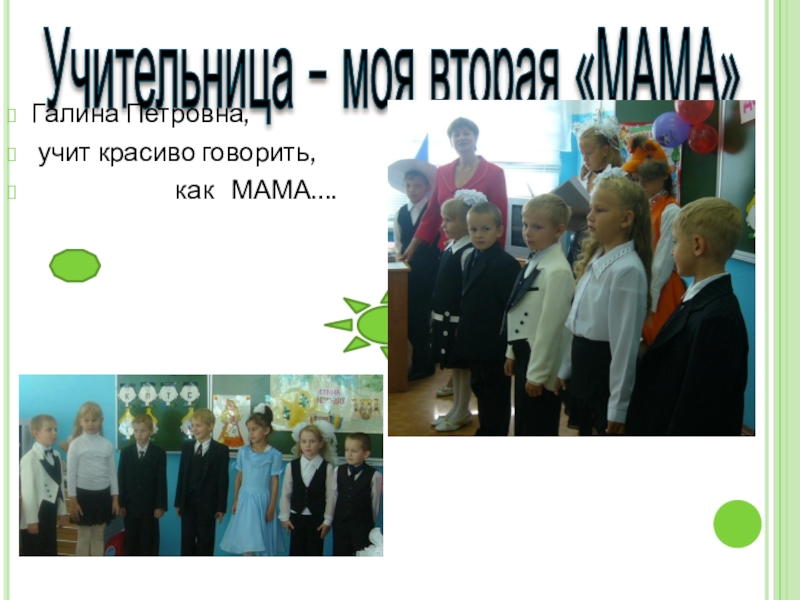 Учительница – моя вторая «МАМА»Галина Петровна, учит красиво говорить,
