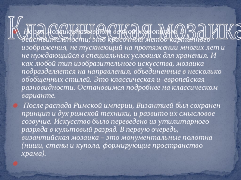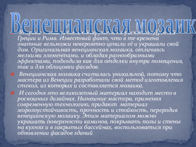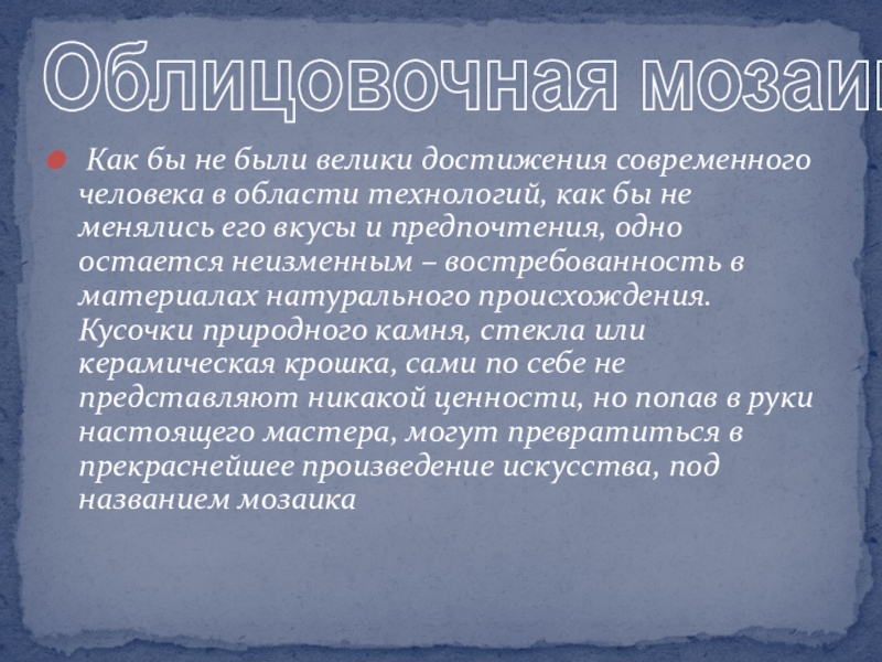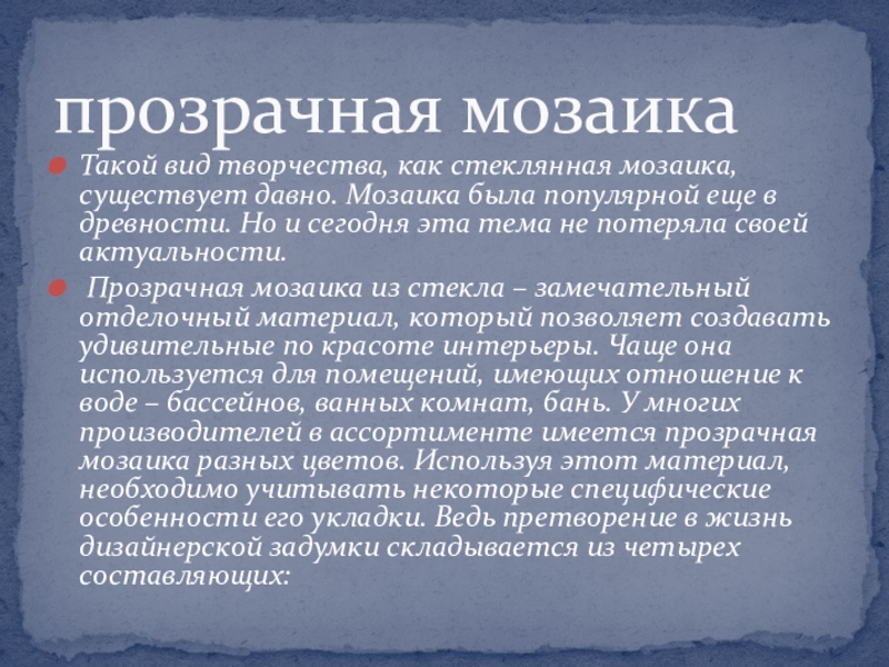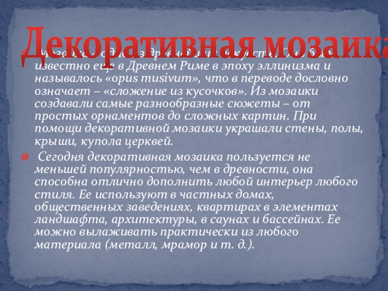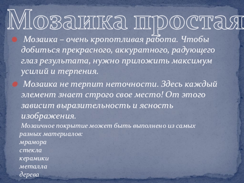Мозаичное покрытие может быть выполнено из самых разных материалов: