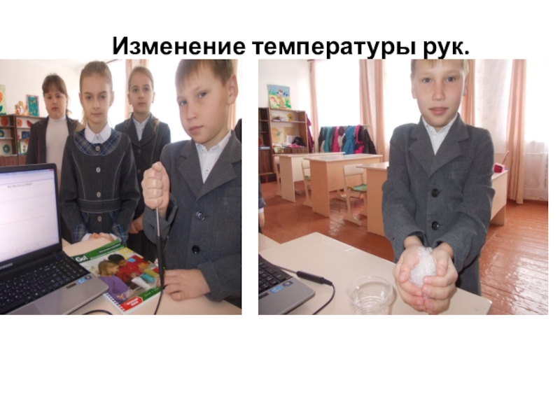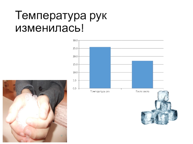 Датчик показал, что температура у всех учеников разная. После того, как подержали снег, температура резко понизилась.