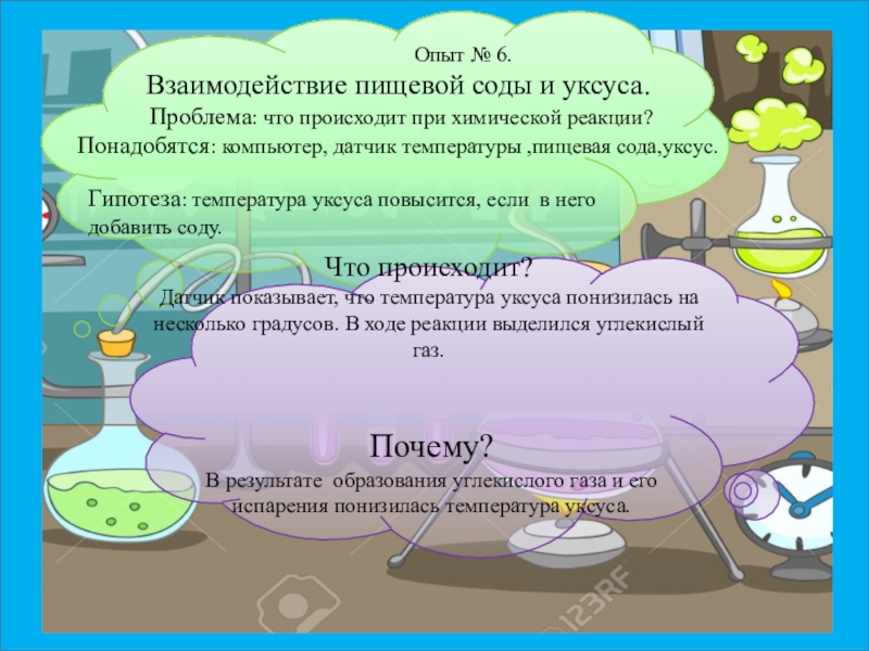 Гипотеза: температура уксуса повысится, если в него добавить соду.