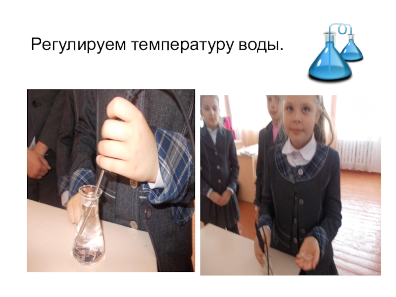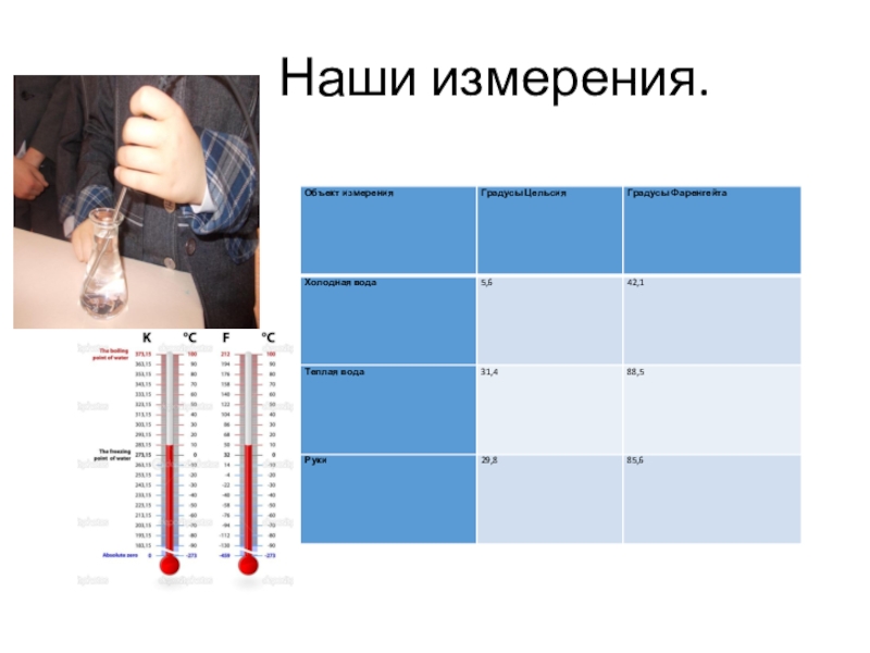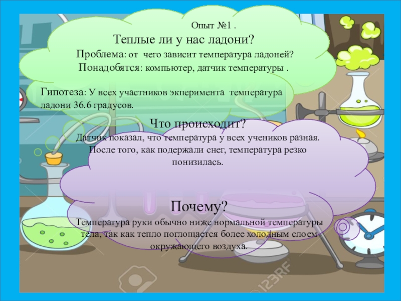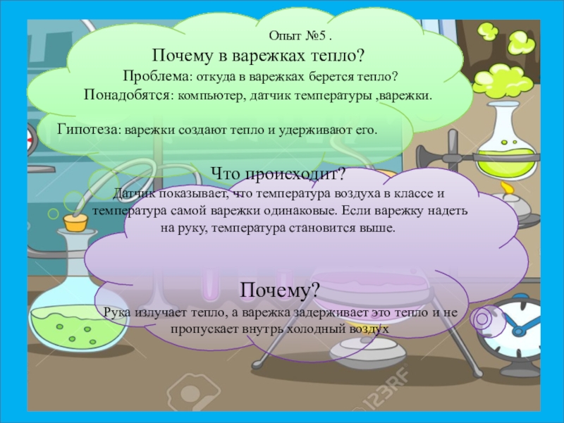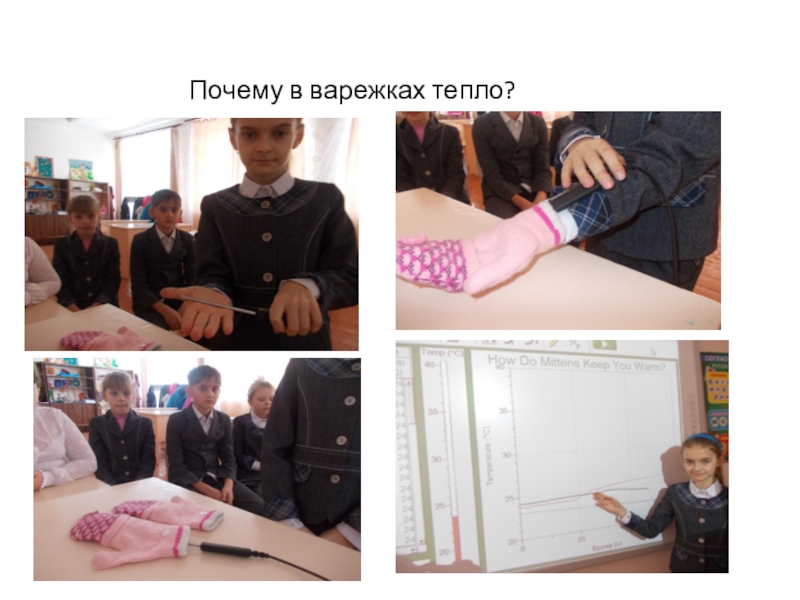 Датчик показывает, что температура воздуха в классе и температура самой варежки одинаковые. Если варежку надеть на руку, температура становится выше.