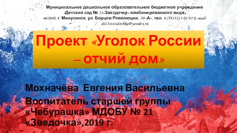 662603, г. Минусинск, ул. Борцов Революции, 50 «А», тел. 8 (39132) 5 01 91 E-mail: ds21zvezdochka@yandex.ru