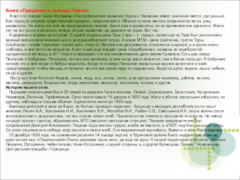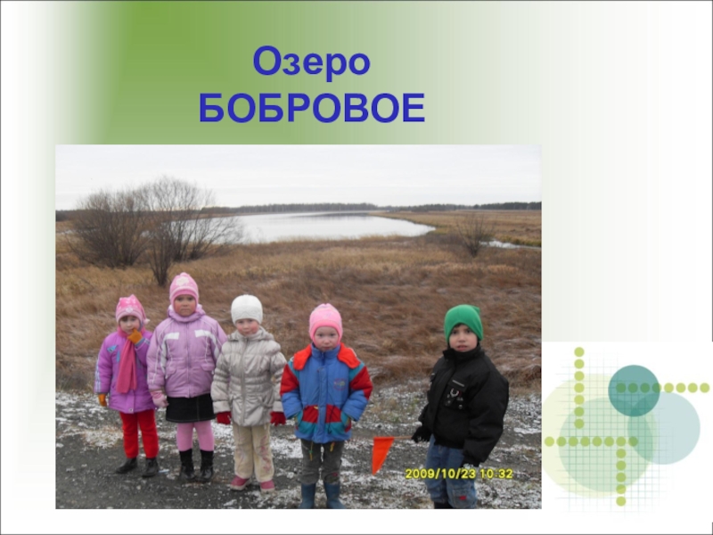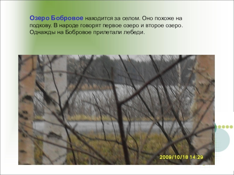 Слайд 34Озеро Бобровое находится за селом. Оно похоже на подкову. В народе