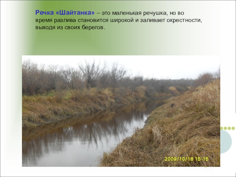 Слайд 33Речка «Шайтанка» – это маленькая речушка, но во время разлива становится