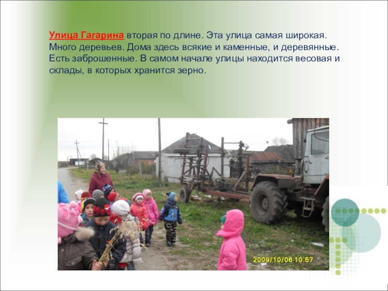 Слайд 19Улица Гагарина вторая по длине. Эта улица самая широкая. Много деревьев.