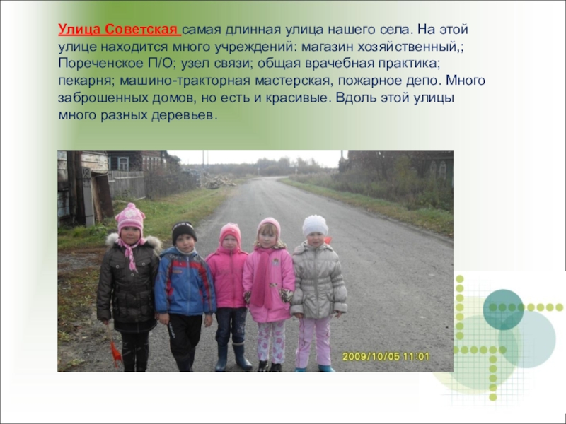 Слайд 10Улица Советская самая длинная улица нашего села. На этой улице находится