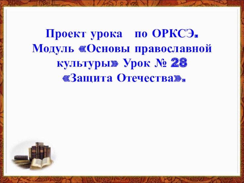 Презентация, доклад на тему Проект урока по ОРКСЭ. Модуль Основы православной культуры Урок № 28 Защита Отечества.