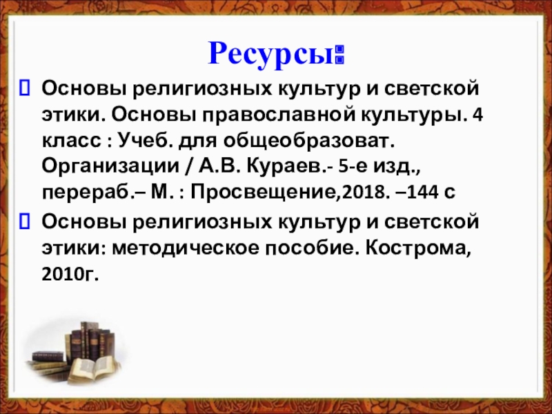 Ресурсы:Основы религиозных культур и светской этики. Основы православной культуры. 4 класс : Учеб. для общеобразоват. Организации /