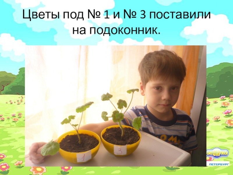 Слайд 5Цветы под № 1 и № 3 поставили на подоконник.