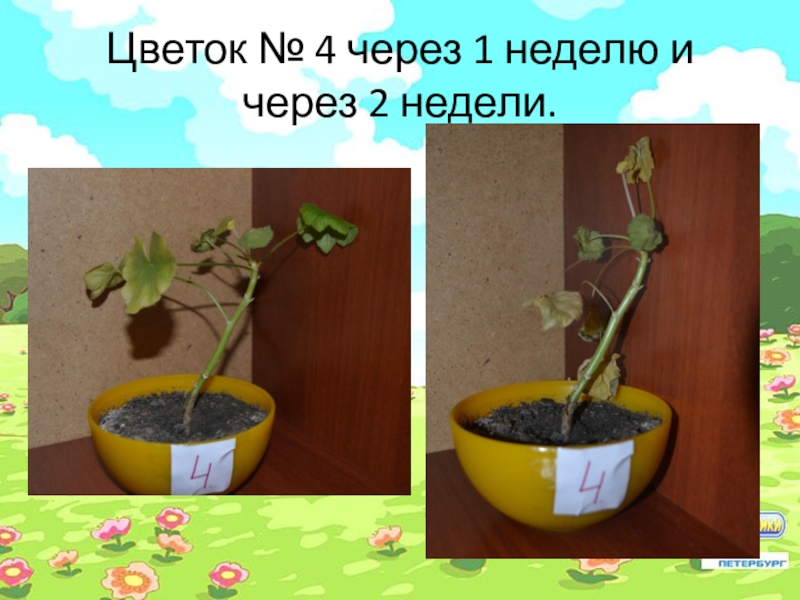 Слайд 8Цветок № 4 через 1 неделю и через 2 недели.