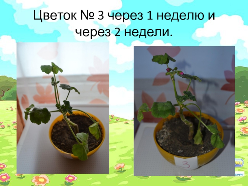 Слайд 11Цветок № 3 через 1 неделю и через 2 недели.