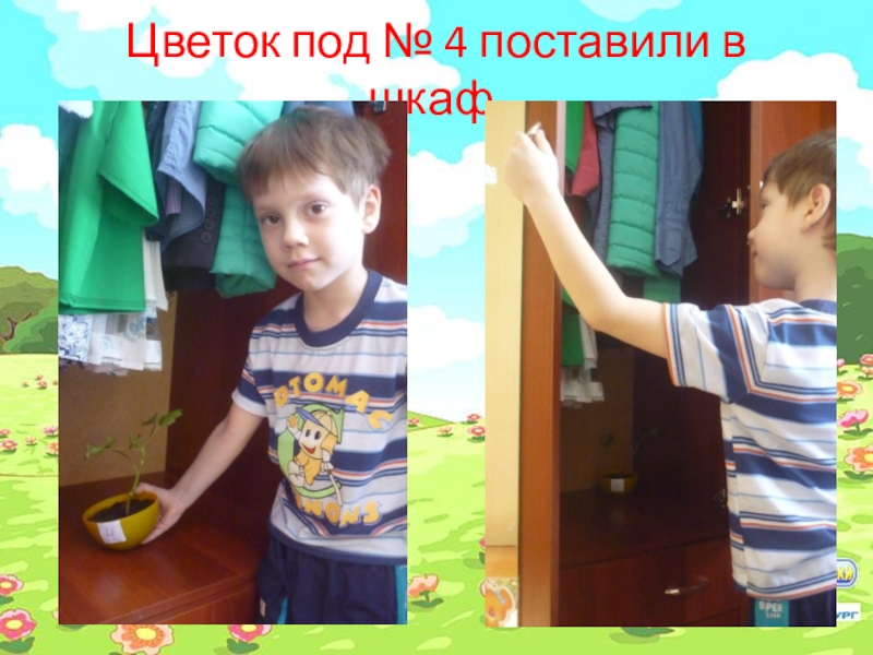 Слайд 7Цветок под № 4 поставили в шкаф.