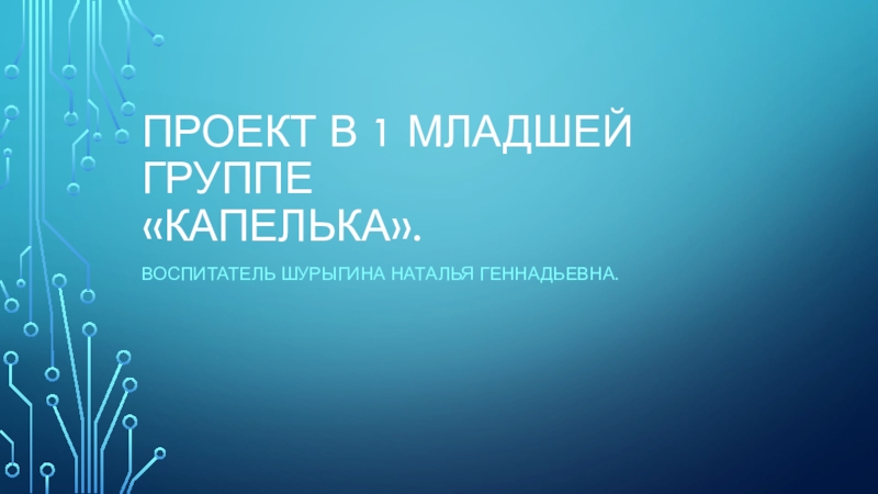 Проект в 1 младшей группе «Капелька».Воспитатель Шурыгина Наталья Геннадьевна.