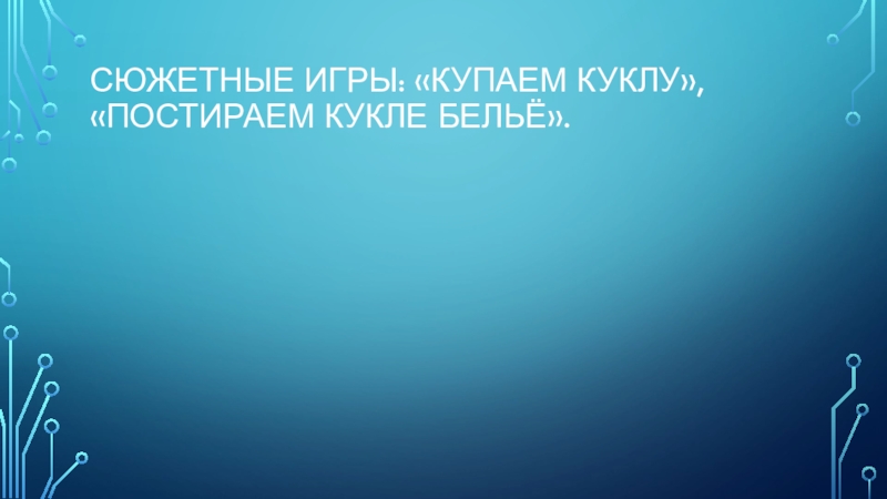 Слайд 8Сюжетные игры: «Купаем куклу», «Постираем кукле бельё».