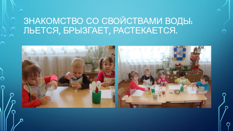 Слайд 9Знакомство со свойствами воды: льется, брызгает, растекается.