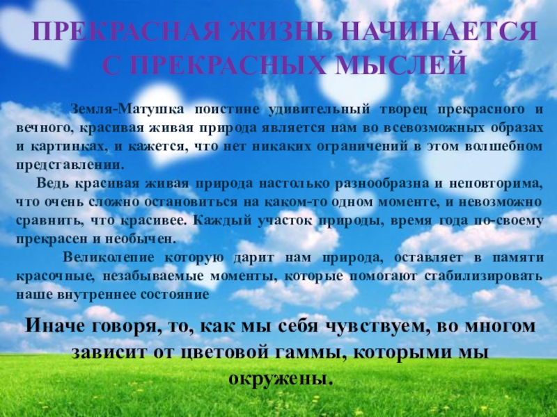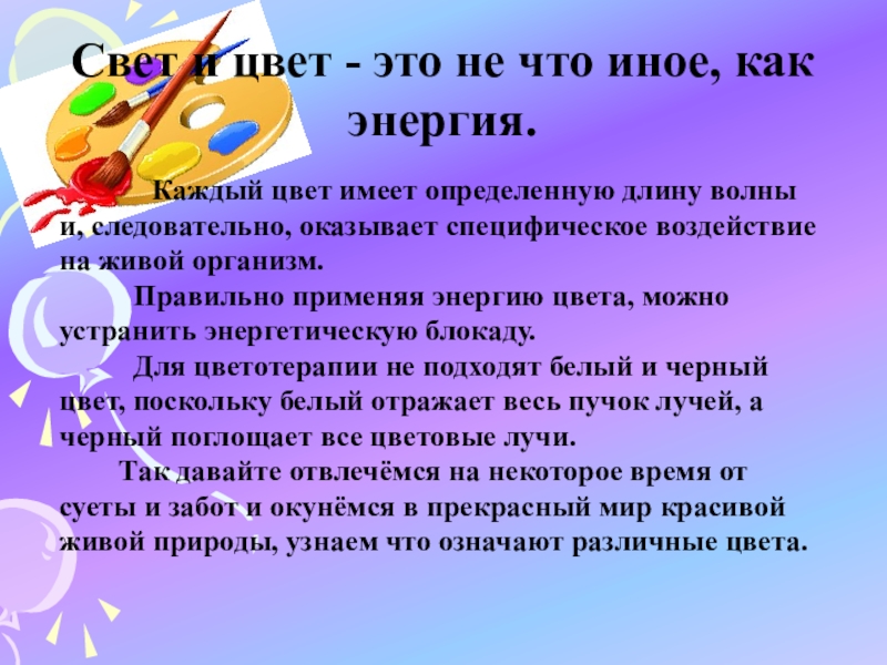 Иначе говоря, то, как мы себя чувствуем, во многом зависит от цветовой гаммы, которыми мы окружены.