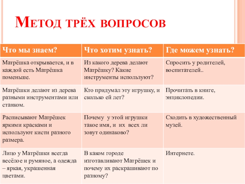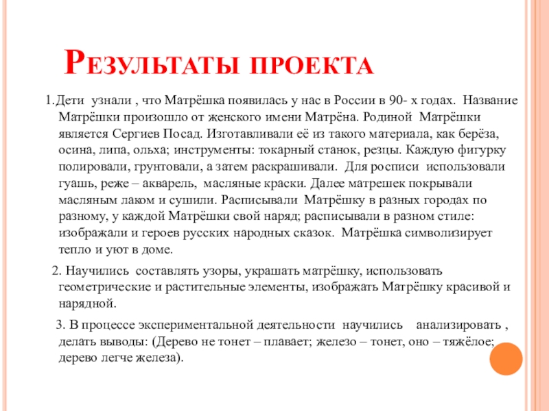 1.Дети узнают об истории возникновения матрёшки, о процессе