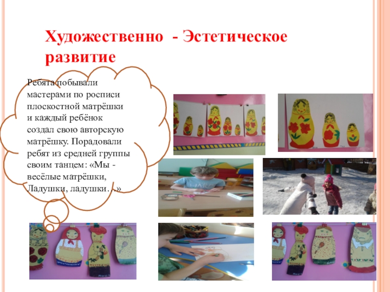 авторскую матрёшку. Порадовали ребят из средней группы своим танцем: «Мы - весёлые матрёшки, Ладушки, ладушки…»