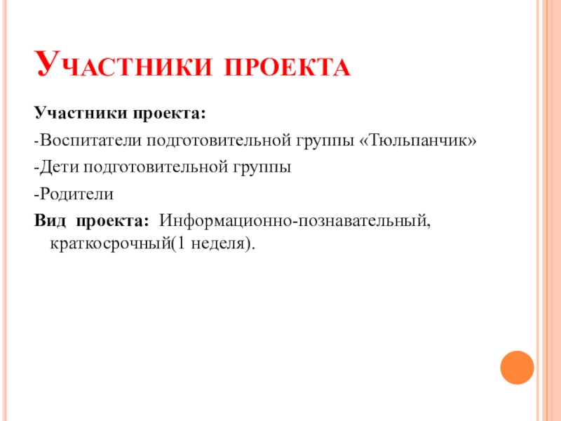 Вид проекта: Информационно-познавательный, краткосрочный(1