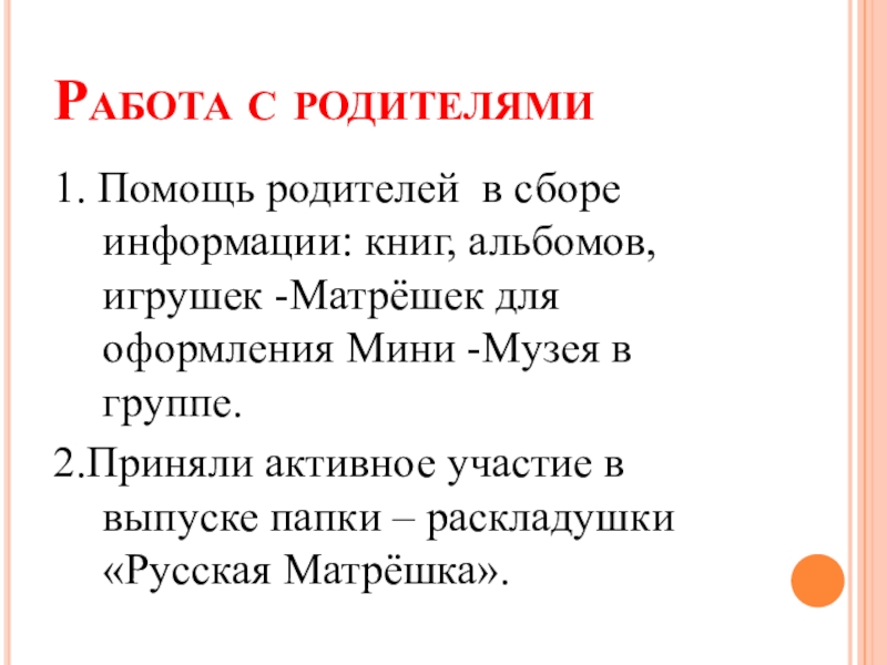 1. Помощь родителей в сборе информации: книг, альбомов, игрушек