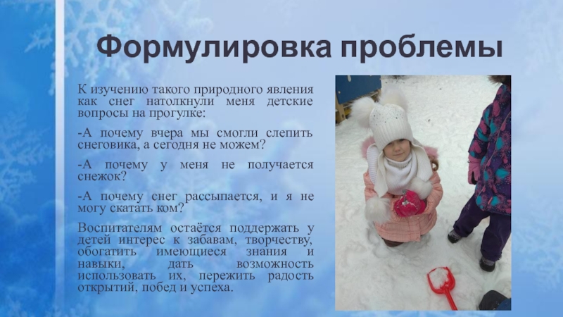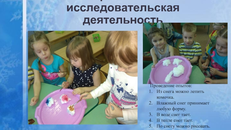 -расширить знания детей о снеге, его свойствах;