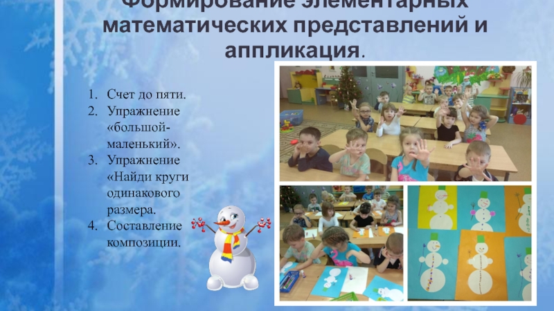 -развивать творческую активность детей, умение создавать образ снеговика различными способами;