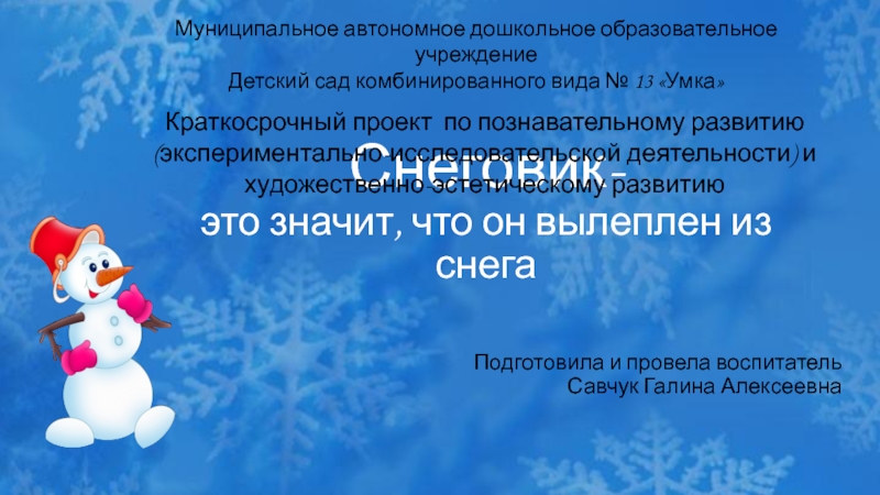 -расширить знания детей о Снеговиках;