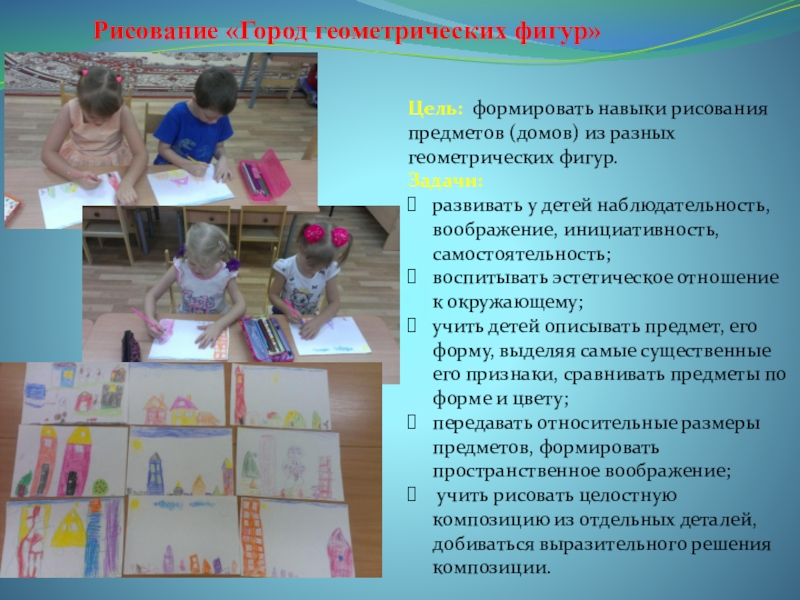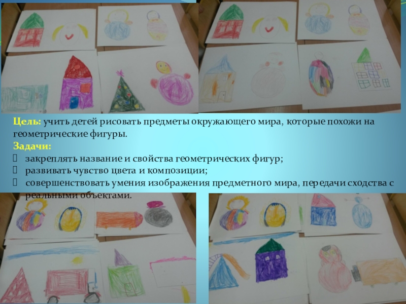 Слайд 15Цель: учить детей рисовать предметы окружающего мира, которые похожи на геометрические