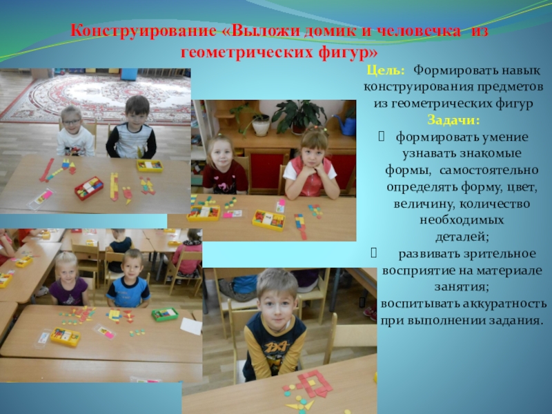 Слайд 10Конструирование «Выложи домик и человечка из геометрических фигур»