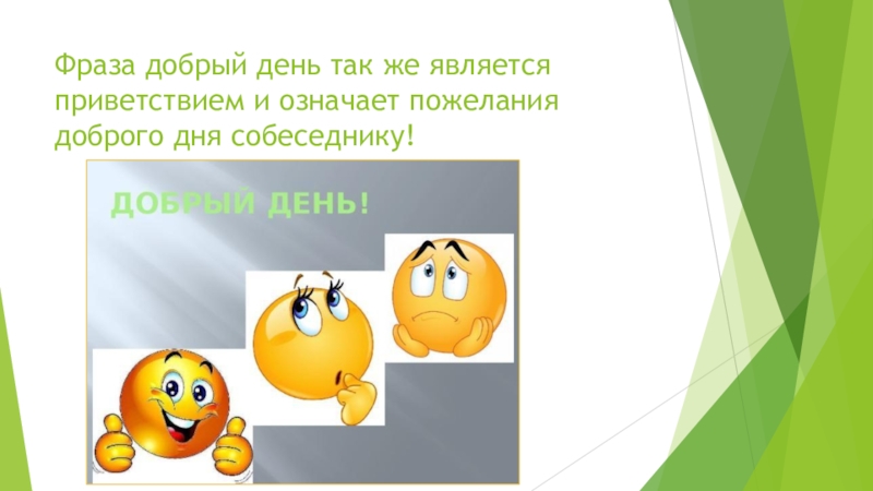 Слайд 6Фраза добрый день так же является приветствием и означает пожелания доброго