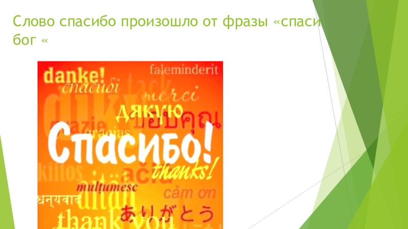 Слайд 3Слово спасибо произошло от фразы «спаси бог «