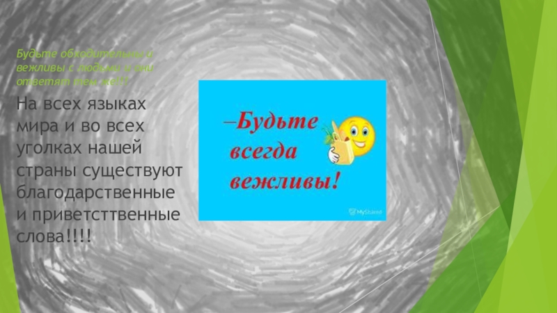 Слайд 15Будьте обходительны и вежливы с людьми и они ответят тем же!!!