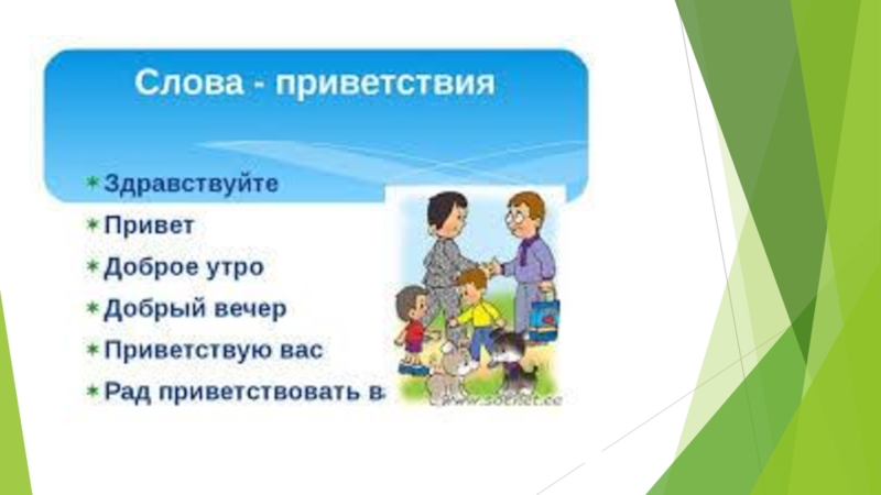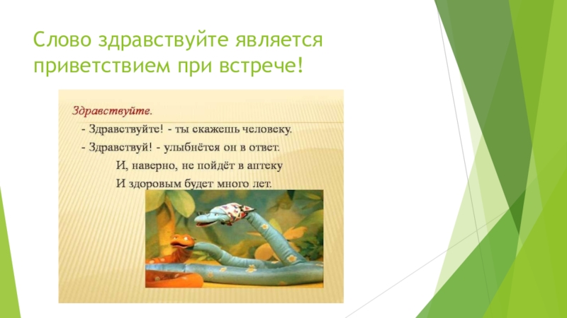 Слайд 5Слово здравствуйте является приветствием при встрече!