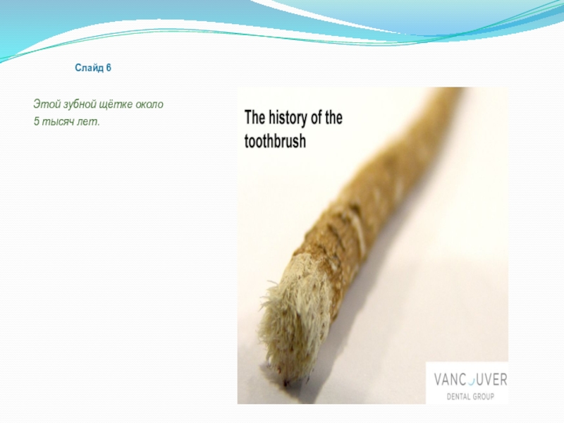 Слайд 6Этой зубной щётке около5 тысяч лет.