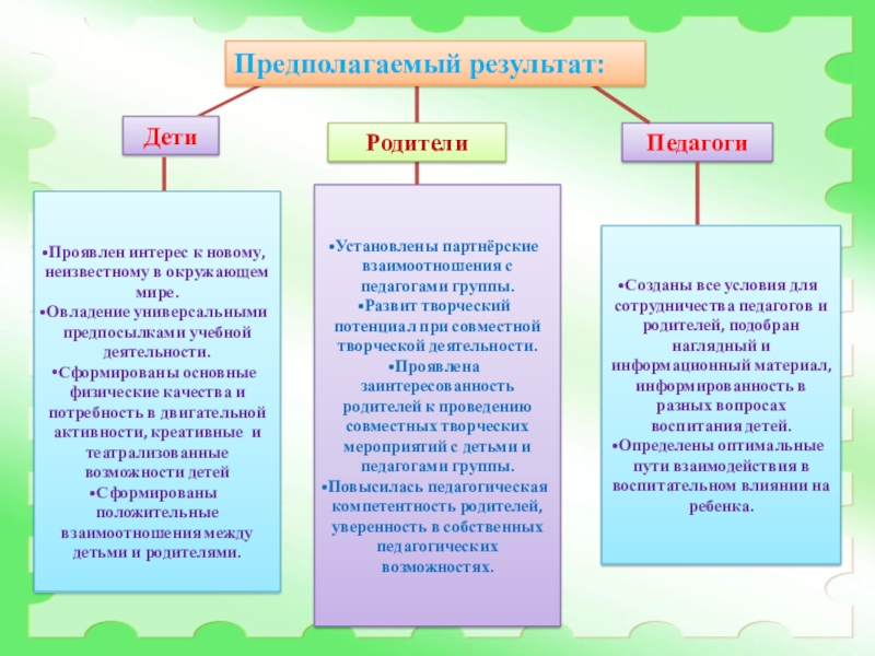 Определены оптимальные пути взаимодействия в воспитательном влиянии на ребенка.
