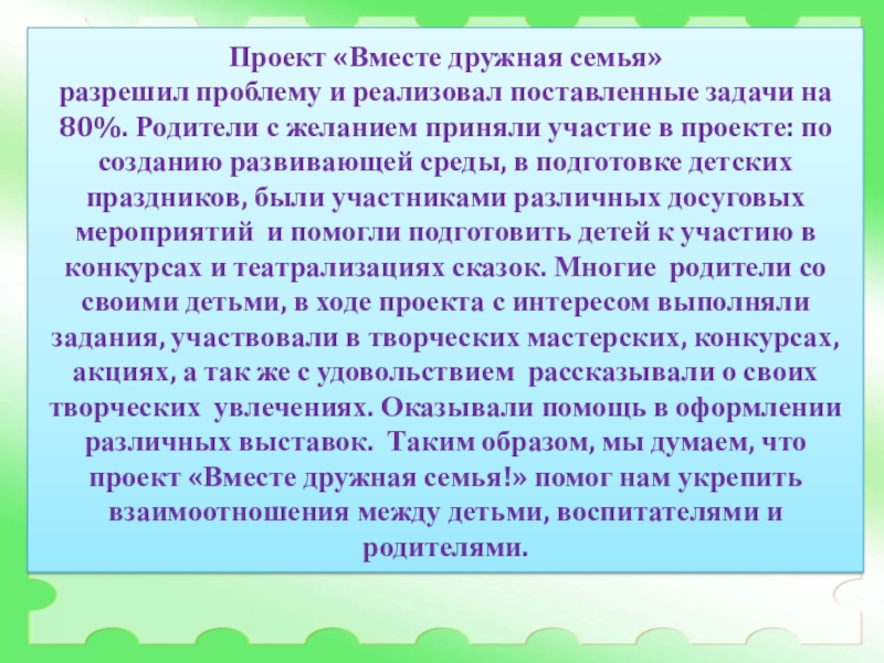 Сформированы положительные взаимоотношения между детьми и родителями.